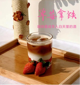 咖啡实训作品 蝶恋花 草莓拿铁