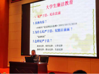 2020年12月23日下午,学校党委副书记、副校长卢东亮以“大学生廉洁教育”为题,为入党积极分子讲授专题党课,20多名酒旅学院入党积极分子参加。卢东亮副校长围绕“大学生廉洁教育”这一主题,详细阐释了系统强化六大建设的必要性和重要性。卢东亮副校长认为,对于一个有9000多万名党员、460多万个党组织的大党,必须持而不息推进全面从严治党,必须全面加强党的领导。