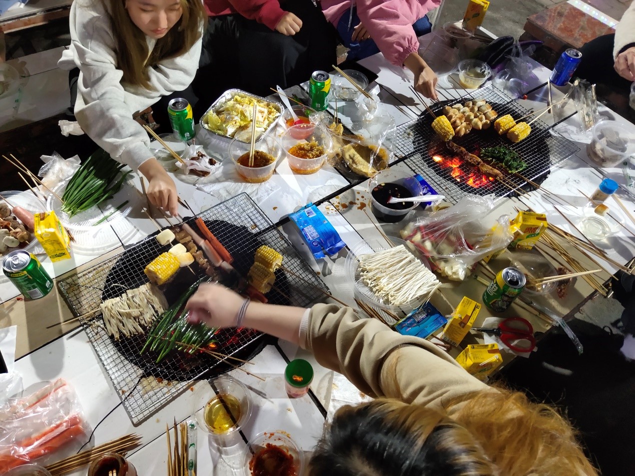 大家展示了不同的烧烤方法和技艺。欢声笑语随着缕缕炊烟萦绕在空中,大家吃着自己亲手烤出的各种食品,聊着自己在学习和闲暇之余中所遇到的各种趣事,其乐融融!活动一直持续到晚上十点钟,食物几乎被大家“洗劫一空”,整个活动气氛非常热烈!