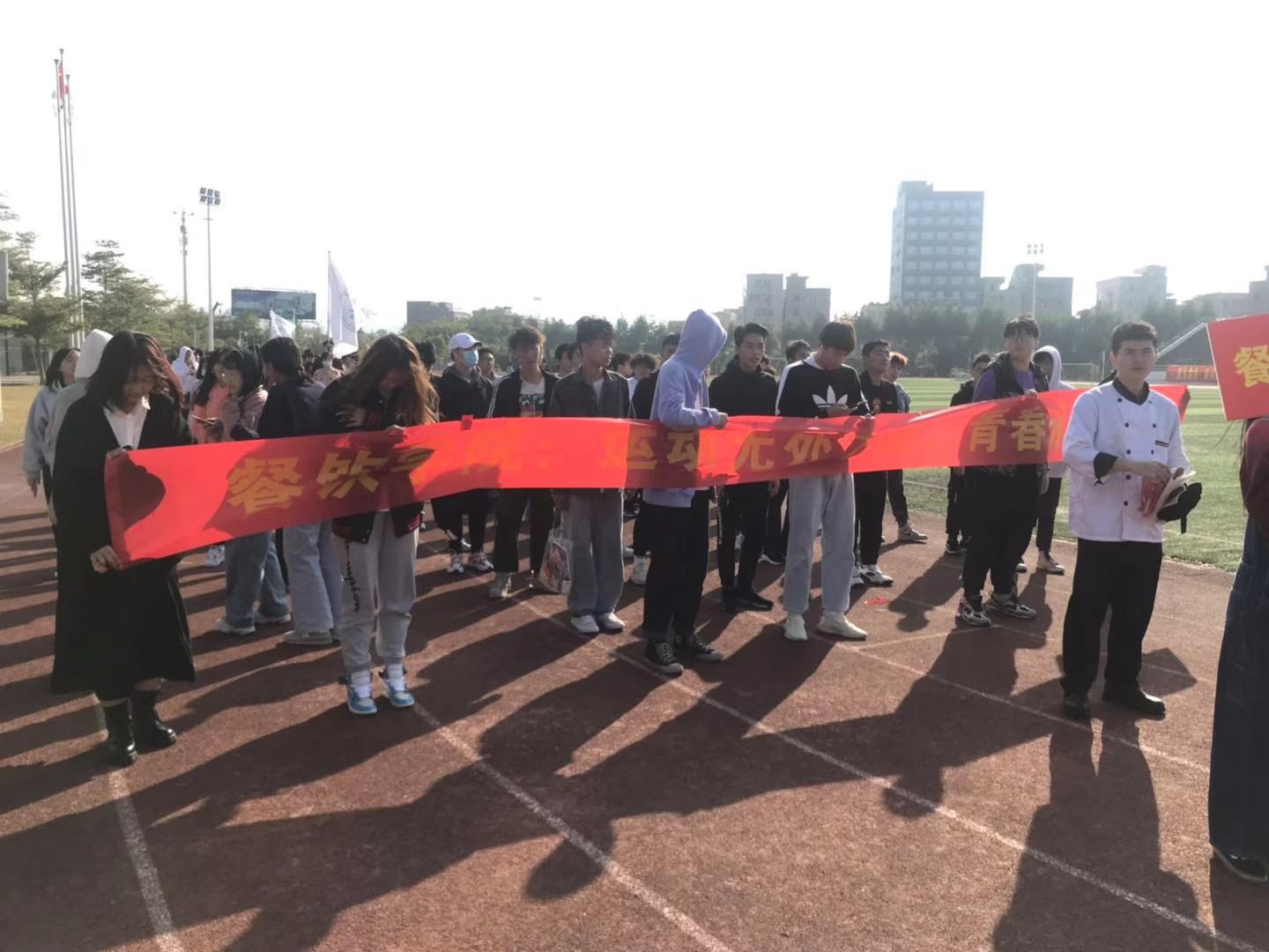 “运动无处不在,青春永不言败。现在向我们走来的是餐饮学院的健儿们。他们是一支敢于梦想,勇于拼搏,持续进取的团队。他们的理念是:与自信同在,与成功同行。他们将秉承“用火的热情迎接比赛,用海一般的胸怀面对失败,用花的灿烂迎接胜利。”餐饮学院的每一位同学将用青春的画笔勾画着属于自己的色彩,用拼搏与收获放飞辉煌梦想。”,这是餐饮学院此次校园会的出场白。同学们满怀热情,热切的期盼大会的顺利进行的到来。