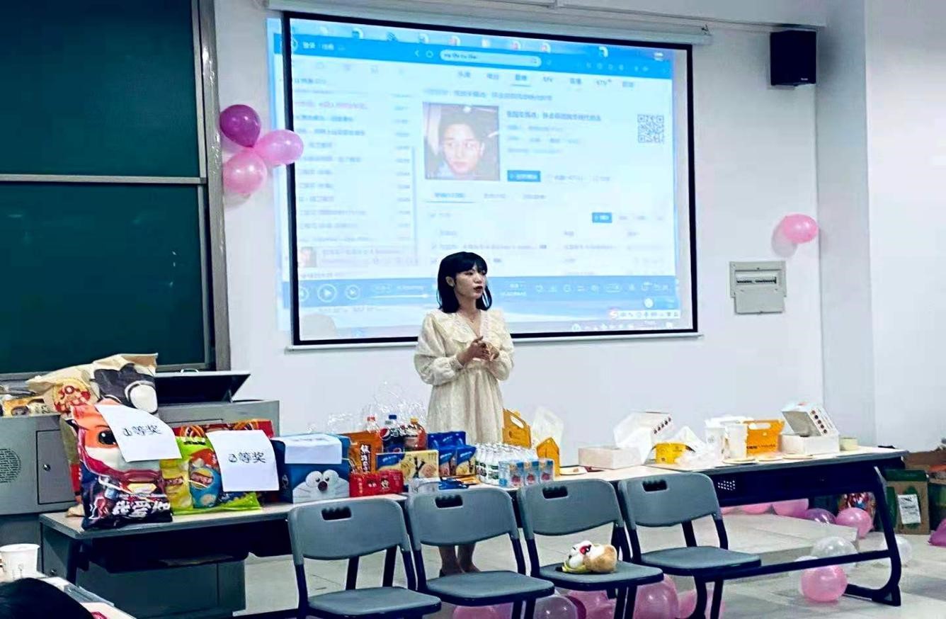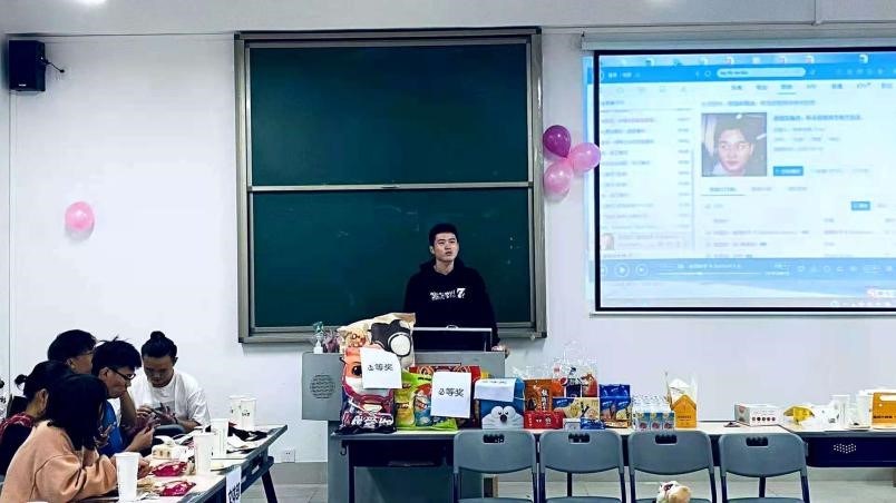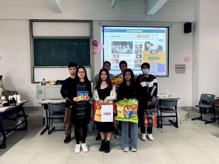 座谈过后现场进行了游戏互动增添一下会议气氛,系学生会还为同学们准备了奖品与零食。
