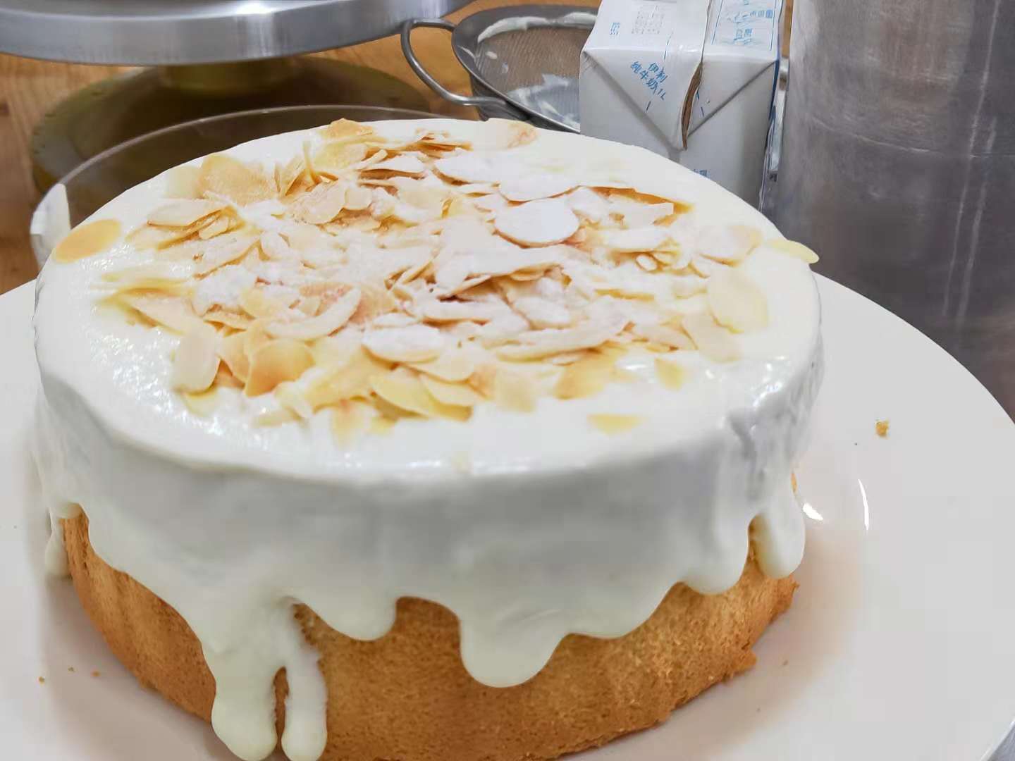 教师演示如何铺奶盖