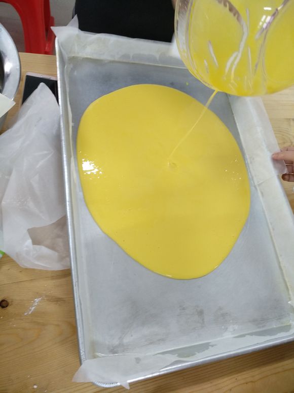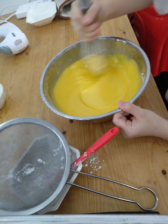 学生制作虎皮蛋糕过程