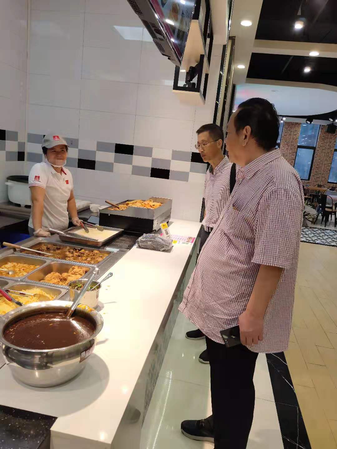 宿舍走访结束后,校领导一行前往学院食堂查看开学准备工作,与食堂员工和学生交流。