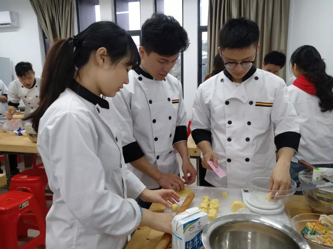 本学期,16级西餐万豪班同学们在老师的带领下,在西式菜肴、糕点实训课上多点突破、蹄疾步稳,在理论知识和实训实践方面全面发力、纵深推进烹饪技能的增长。平时在实训课堂上,老师与同学们携手共进,不辞劳苦、克服一项又一项枯燥麻木的基本功练习,用坚持、汗水、智慧不断获取西菜、面点的烹饪技能。