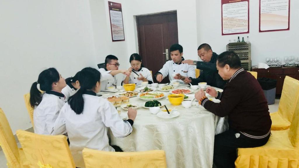 老师分别对“备料现场”考核和“成品出品”考核两个环节进行了监考。指导老师李绪彬和陆慧玲等老师分别从菜肴与主题的切合度、食材的搭配和处理、色香味、摆盘等几个评分点和个人基本素质(预处理工艺、制作技术、成熟工艺等现场操作,服装、个人卫生、合理用料不浪费等)综合测评给出小组分和个人得分。并为每个小组讲解每道菜肴加分和扣分的依据。