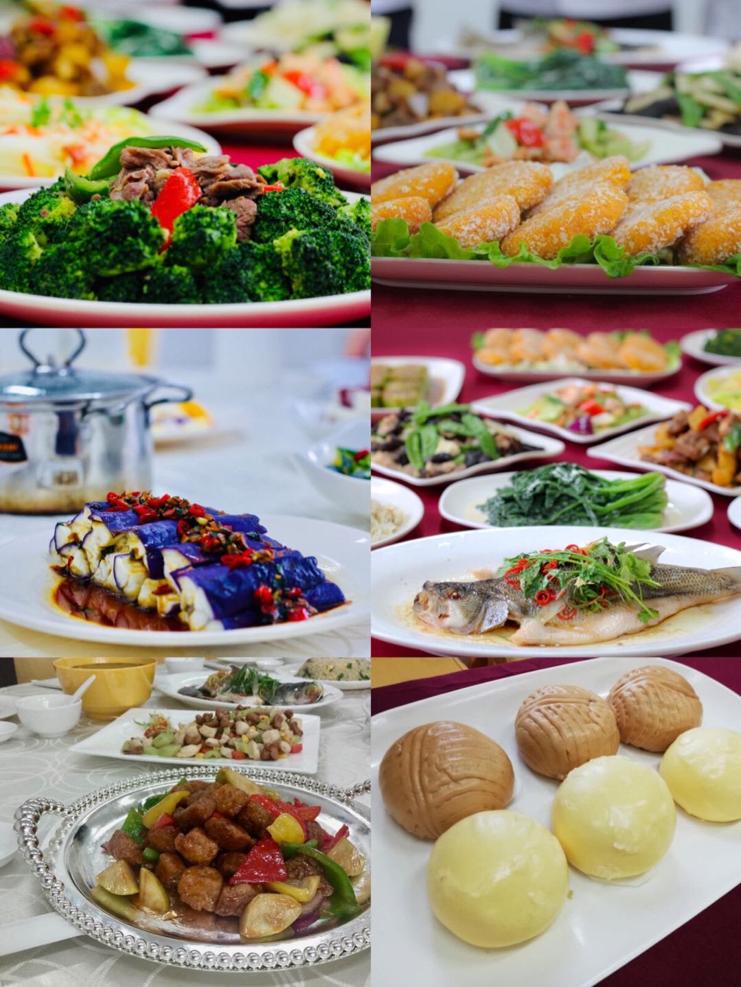 在实训楼S107制作室和实训楼S405成品制作室,参加考核的同学以认真严谨的态度,把两年来课堂学习的理论知识和实操训练的技能结合起来,特别是灵活运用在实习岗位上跟师傅学习的技巧,相互配合、信心十足地按规程完成每一个环节。每个小组经过近两个小时的从选材备料到菜肴上桌,四桌宴席呈现在评委老师和前来观看的师生面前。