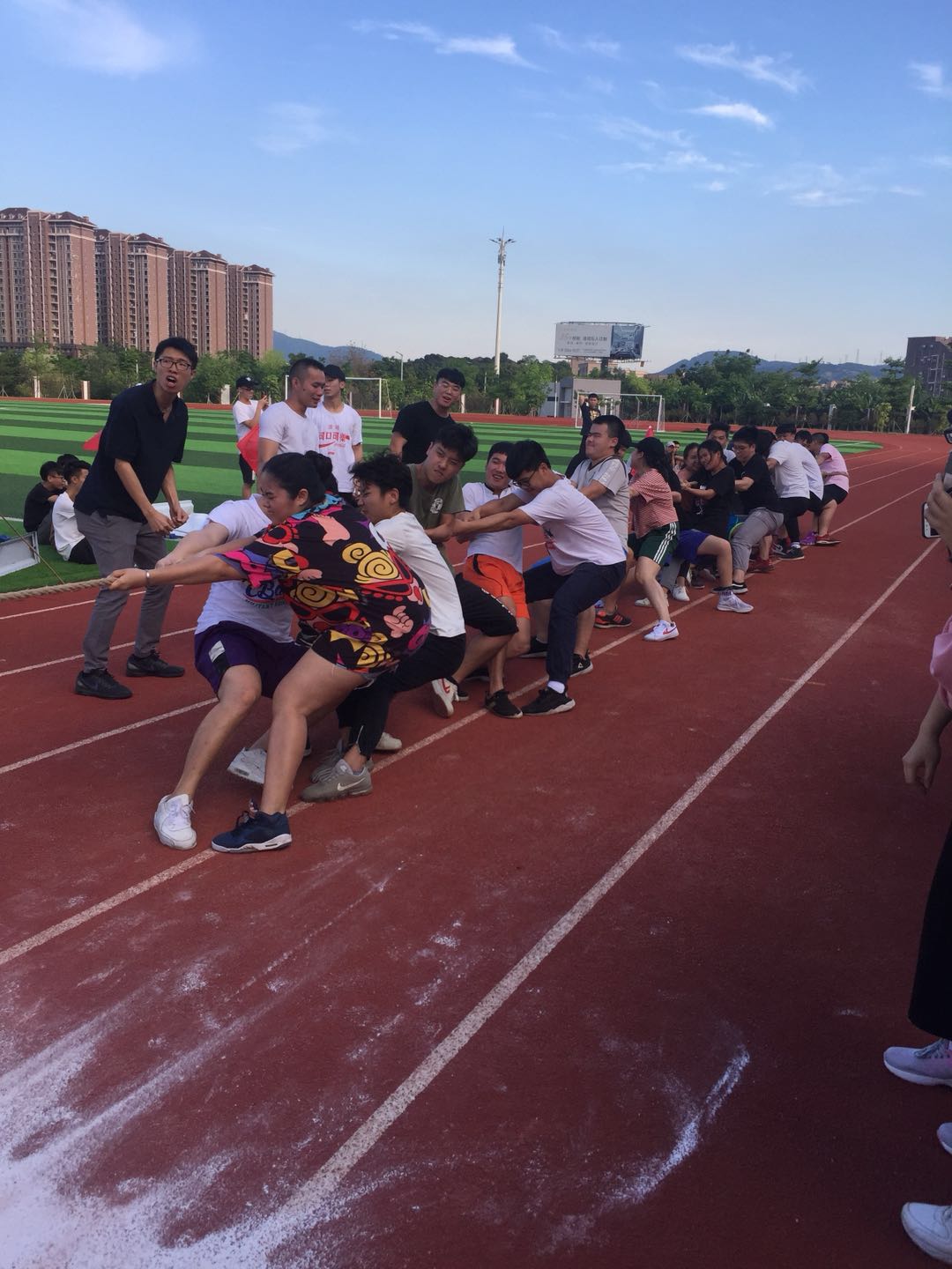 同学们个个都憋红了脸 奋力后仰 双脚死死的抓住地面