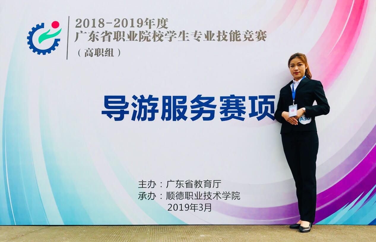 2018-2019年广东省导游服务大赛于3月17日在顺德职业技术学院举行,我校酒旅系18级会展专业1班的潘洪雷同学代表我校与来自全省55所高职院校的优秀选手一起参加本次大赛。经过三天的激烈角逐,潘洪雷同学荣获三等奖,开创了我校学生在此类高水平职业大赛获奖之先河!