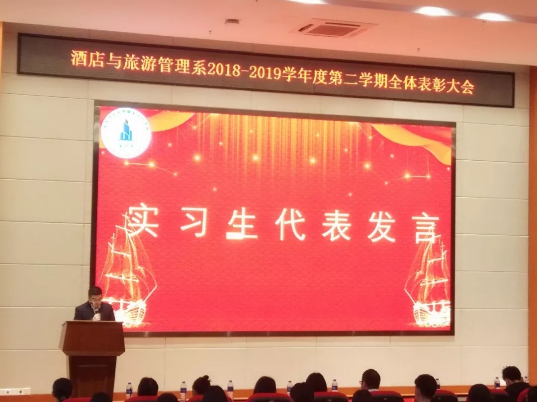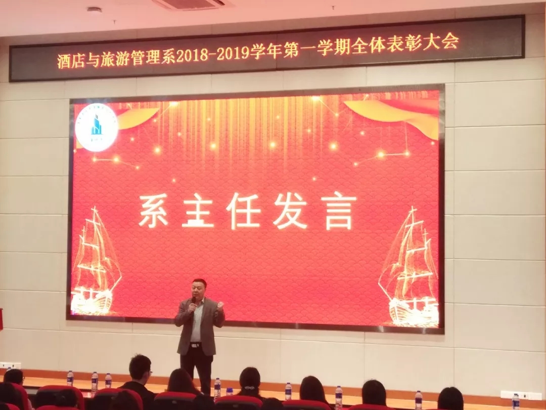 为了表彰先进,树立榜样,2019年3月20日下午2:30-4:00,我校酒旅系在学术报告厅隆重召开2018-2019学年度第二学期表彰大会,表彰优秀实习生、先进个人及系部学生会团委干部等一百余名学生。莅临本次大会的领导有酒旅系副主任郭伟教授、系部学工科长、酒旅系全体教师以及辅导员。
