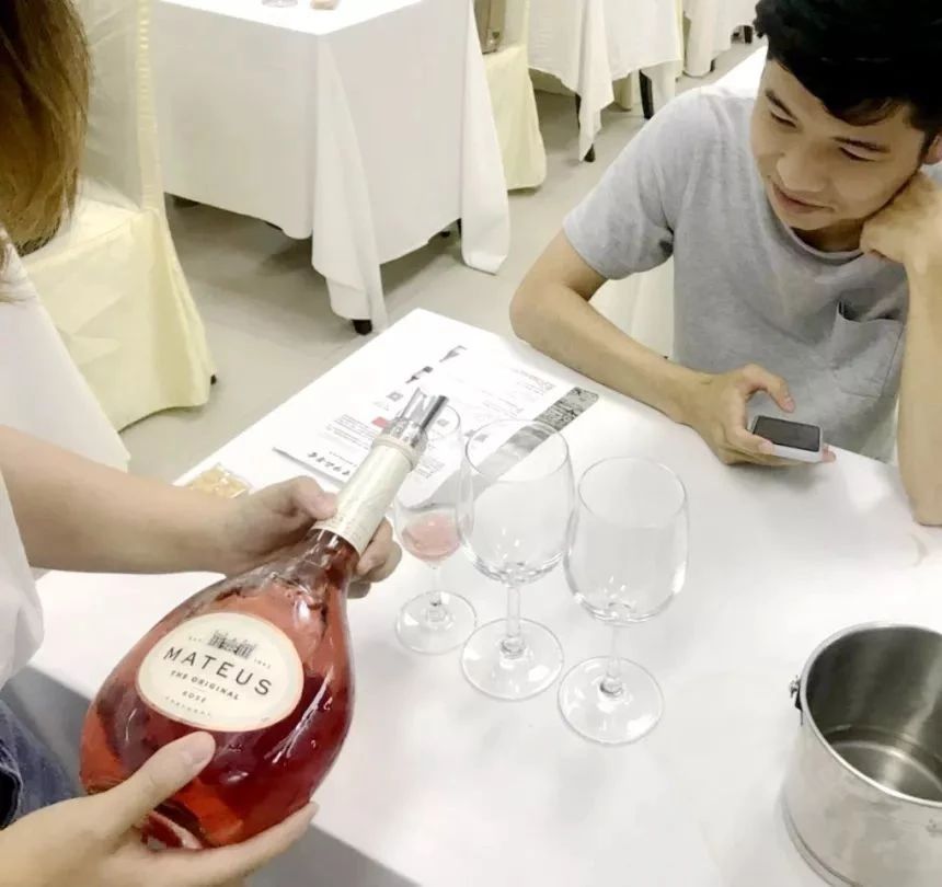 首先登场的是来自葡萄牙的低泡桃红葡萄酒,明亮动人的粉色酒液,成功获得在场各位小姐姐的芳心。