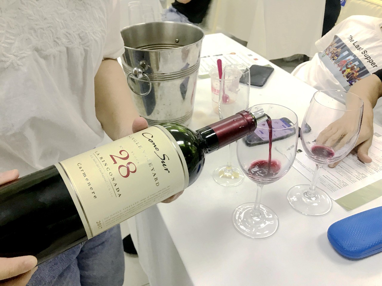 第三款是来自智利的佳美娜,非常年轻的深紫色的酒液,散发着红李子、丁香、香草的气息,还有扑鼻的青椒味,如果在场有青椒爱好者,一定是他的心头好。