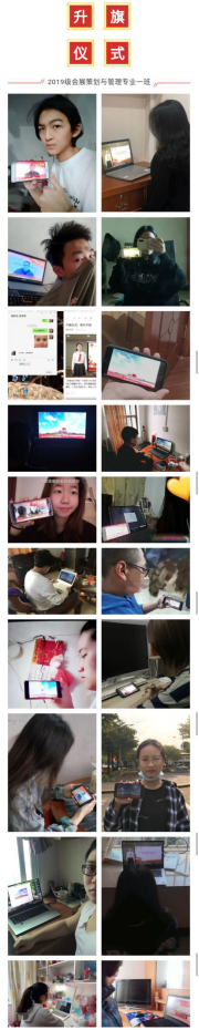 2020年3月2日早上,团市委、市教育局联合举办了“致敬逆行先锋”东莞市2020年春季学期线上升旗仪式,19级会展一班的同学们积极参与了此次网络升旗仪式。
