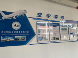 机舱特殊设计制造而成,内部按照真实的民用航空机舱设计航空模拟舱实训室主要担负对乘务人员进行客舱服务、紧急处置和安全意识等训练任务,具有客舱设备理论学习、客舱安全理论学习、乘务员控制面板操作训练等19项主要功能,对开展客舱服务与管理、客舱安全管理、民航乘务英语等课程的场景教学和实训教学提供了优越条件。