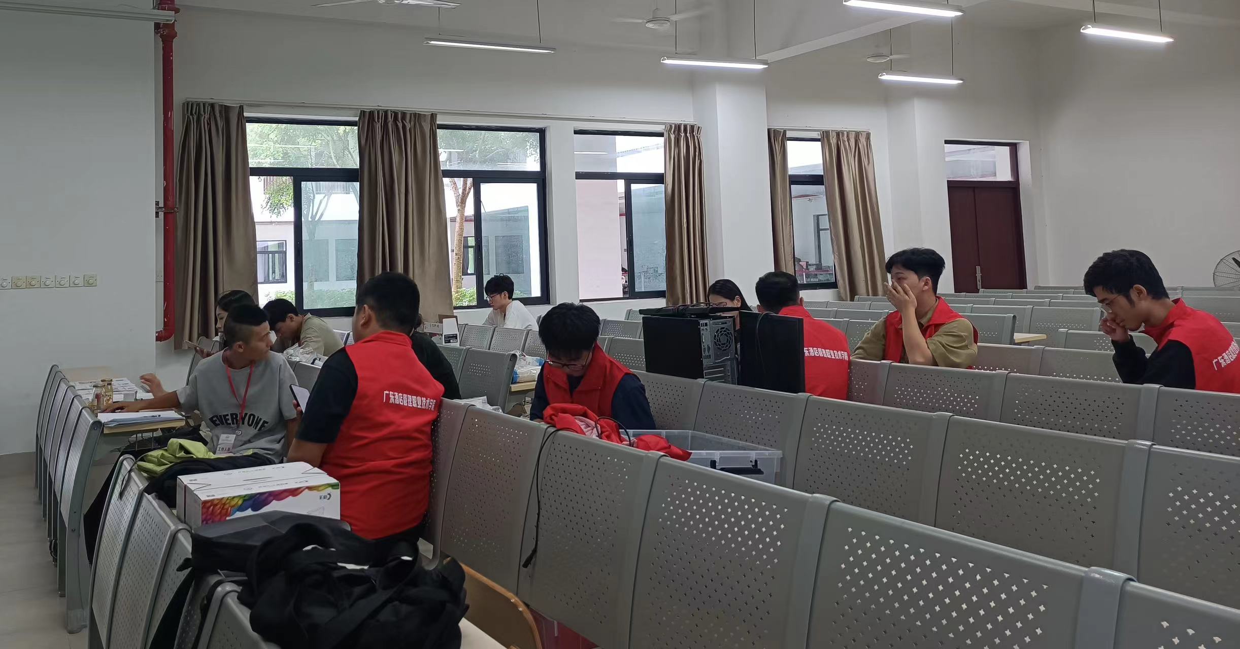 迎新日早7:00,各系(院)、职能部门的工作人员和学生志愿者们已在迎新场地准备就绪。迎新现场,各系(院)新生报到服务点位动线清晰流畅,新生报到快速便利,迎新工作有条不紊地开展,现场井然有序。