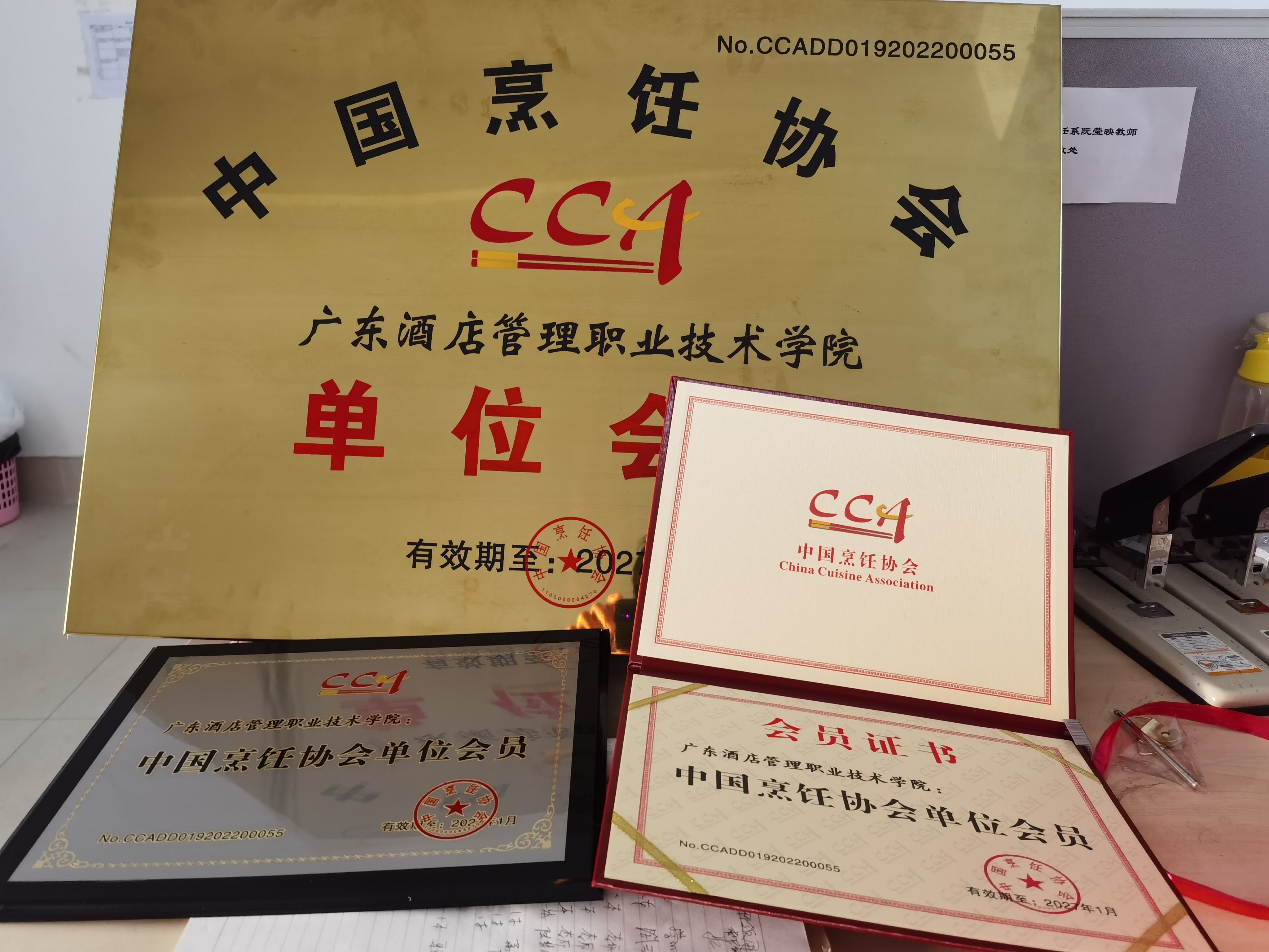 在过去的一年里,由餐饮与粤菜学院领导的带领和全体师生的共同努力下,我校成功加入中国烹饪协会会员单位,并获得相关证书。