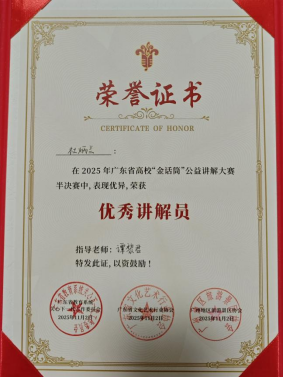 我校学子杜炳兰荣获广东省“金话筒”公益讲解大赛“优秀讲解员”称号